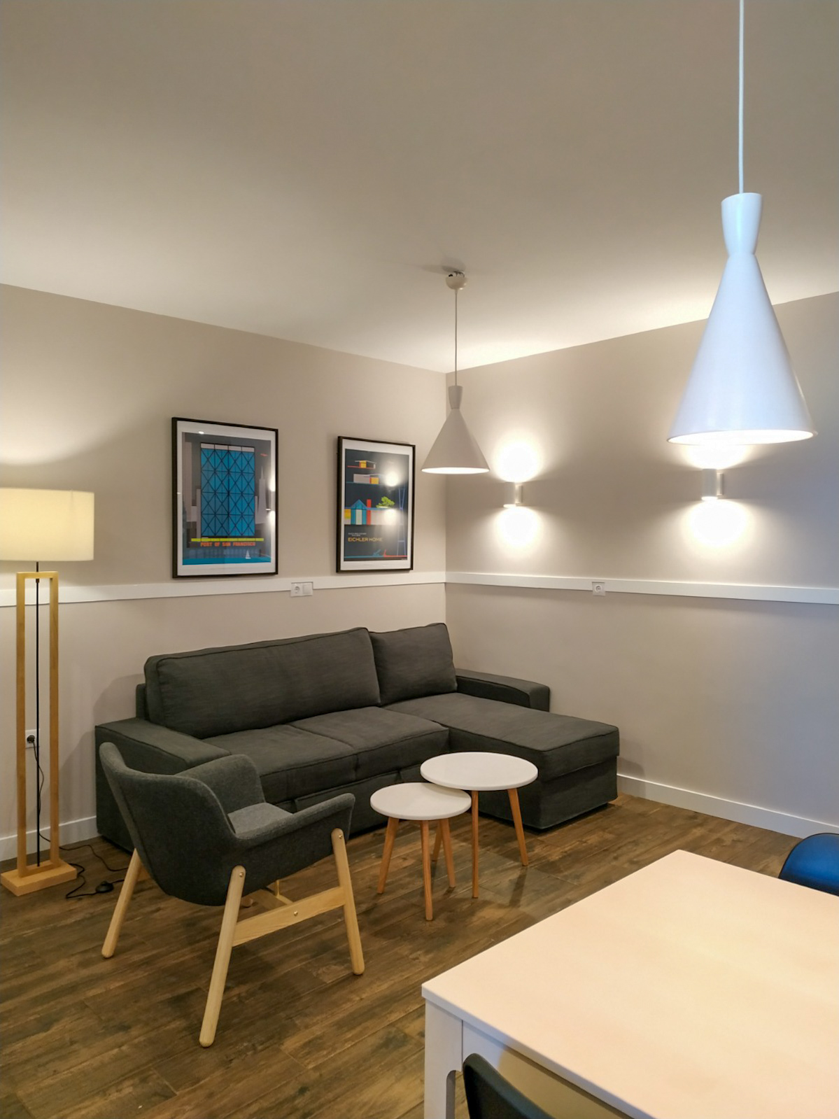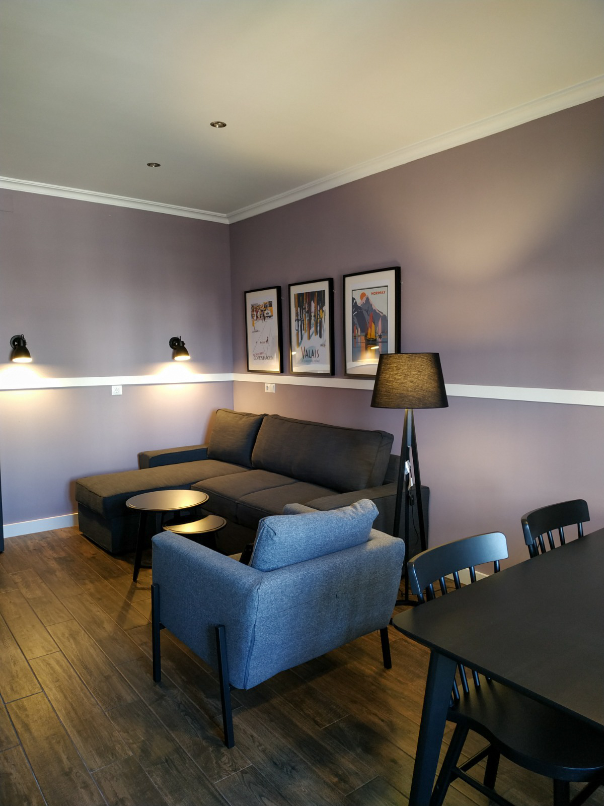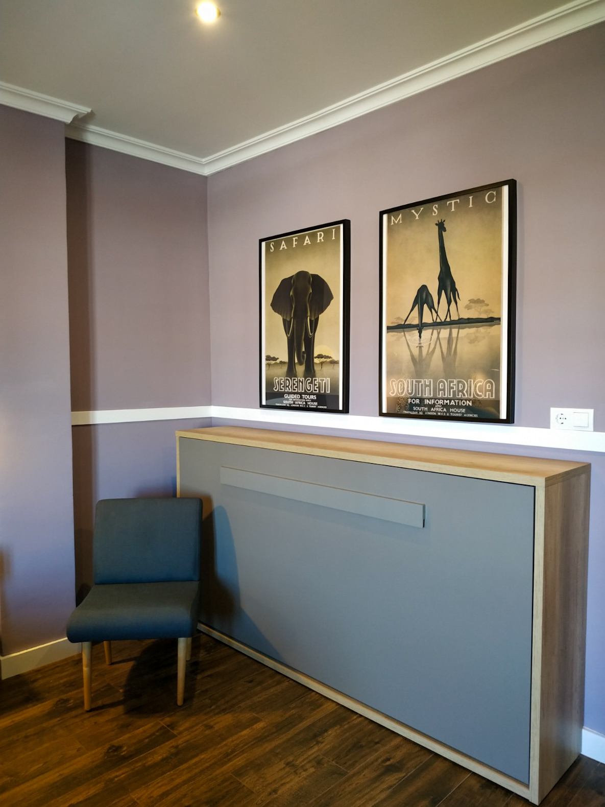 Antes de comenzar el proyecto nos dio 4 premisas: el sofá tenía que ser el modelo Vilasund de Ikea, en las habitaciones se debían incluir camas plegables de la marca Quatro Muebles Juveniles, los cabeceros tenían que ser de cerámica (por cuestiones de higiene) y todas las paredes debían llevar una moldura a media altura para evitar tener que pintar toda la pared cada año.