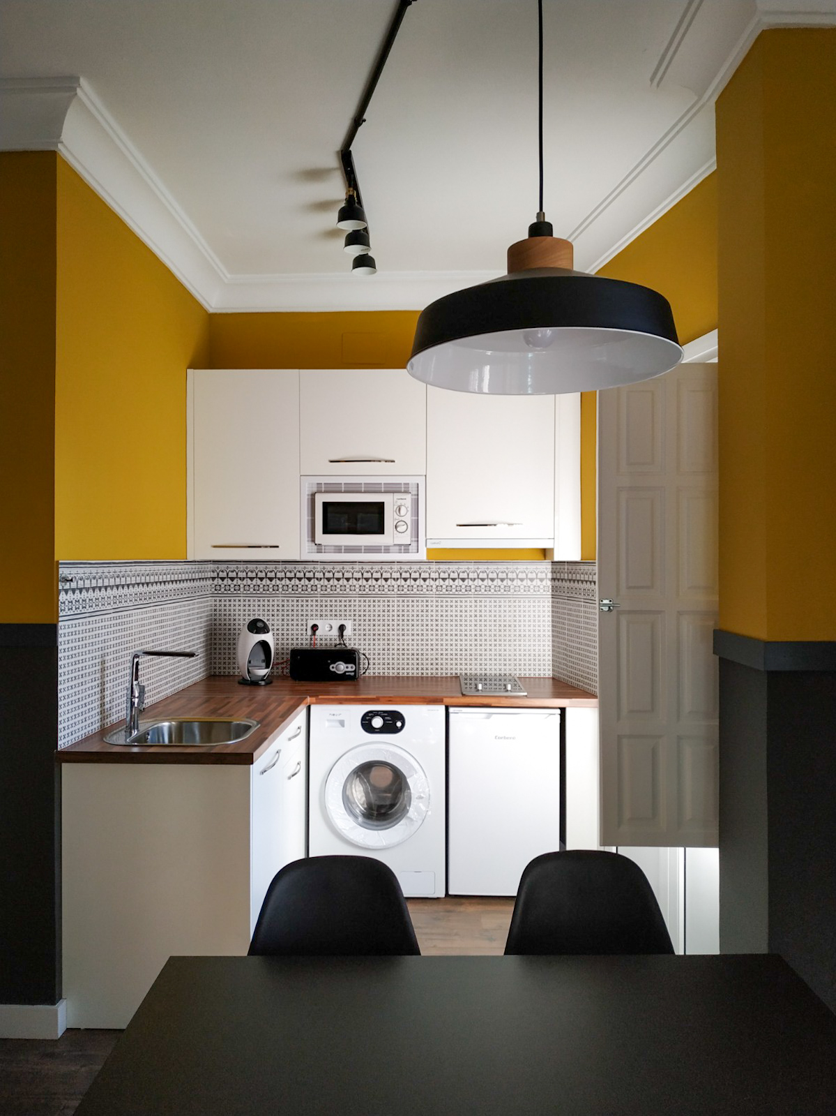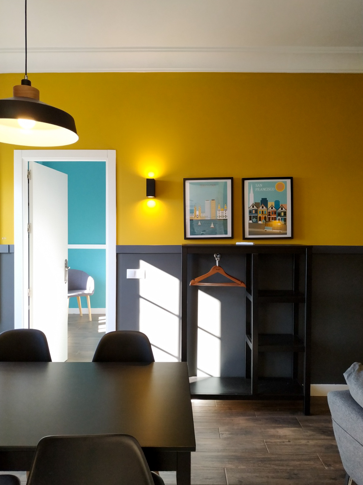 Tras estudiar a la competencia, nos dimos cuenta de que abundaban los espacios de estilo nórdico, con una gama de tonos neutros y claros. Con el objetivo de destacar, decidimos crear una paleta de colores vibrantes que destacasen los detalles arquitectónicos del edificio, sin dejar de crear espacios acogedores, en los que resultase agradable estar.